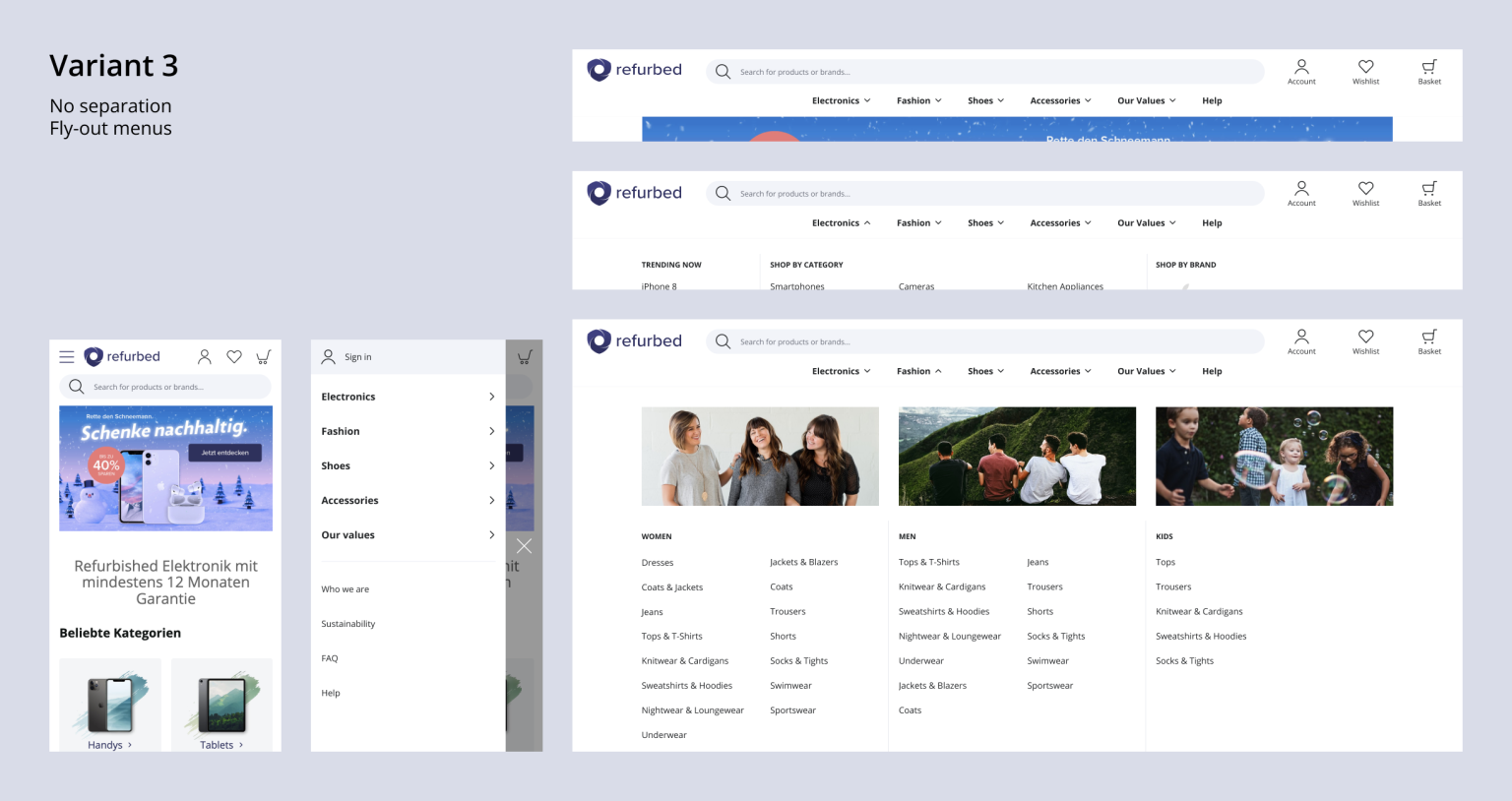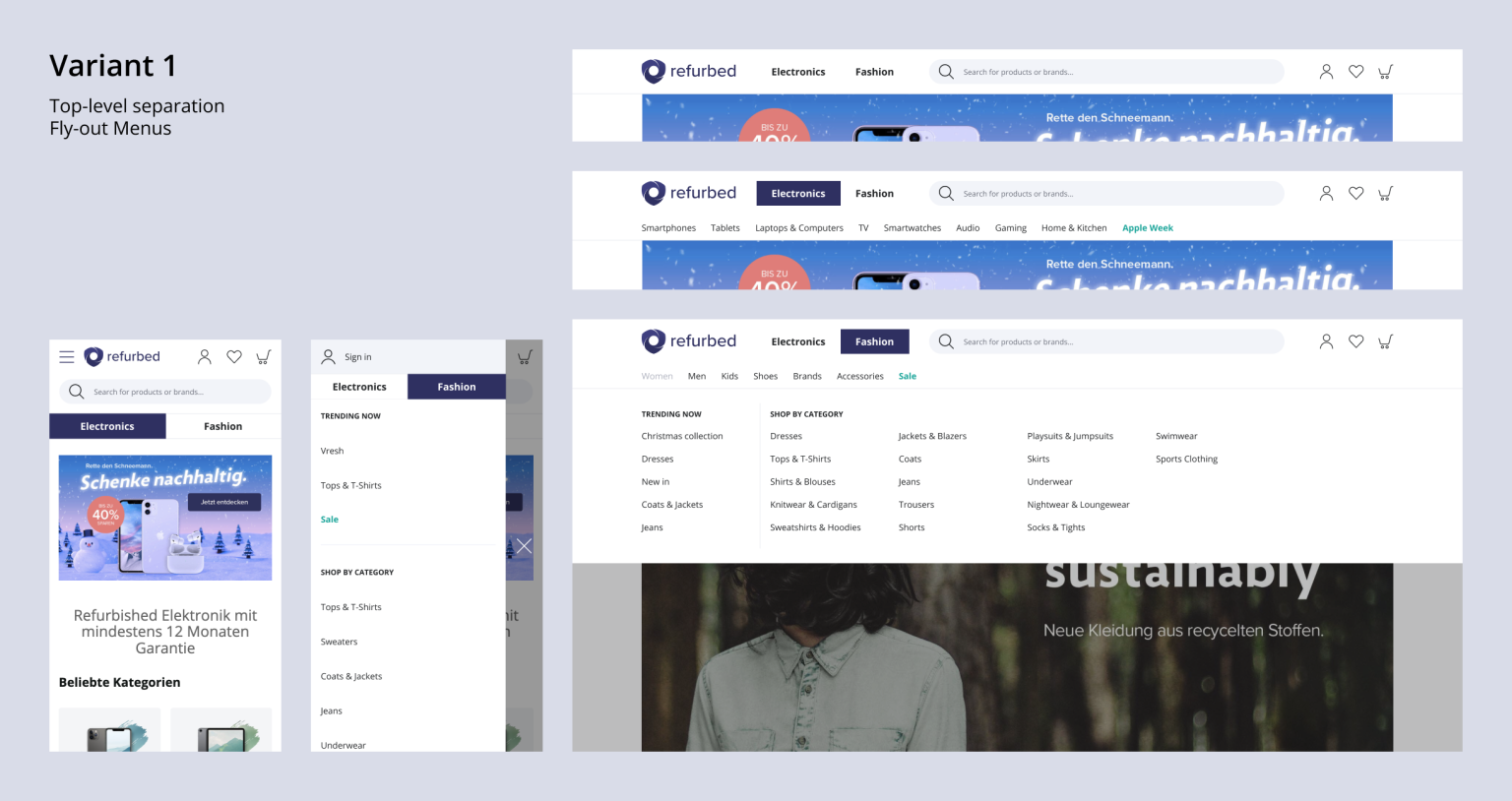 In the next step, the new navigation was implemented and first made visible to 50% of the users as an A/B test. A quantitative analysis and a usability test led to further improvements.